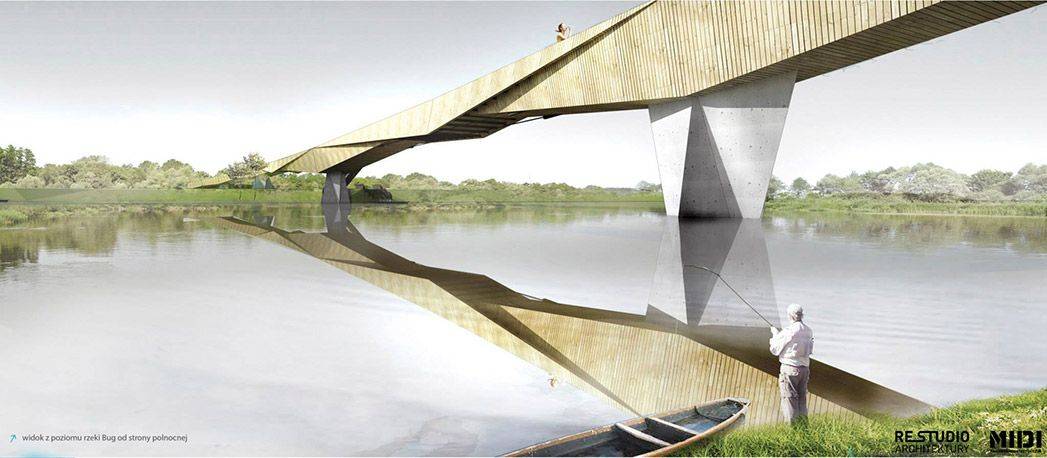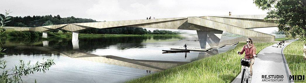 Zadbaliśmy o wygodny dostęp do kładki dla rowerzystów i rolkarzy. Z myślą o rybakach zaprojektowaliśmy także niewielkie molo stanowiące integralną część kładki.
