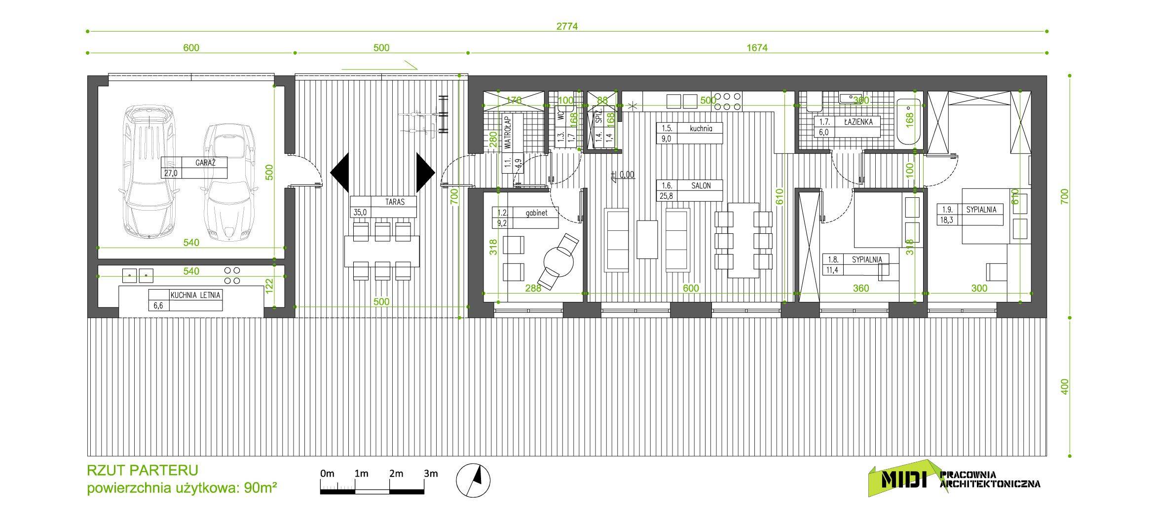 Co prawda, jest to najmniejszy z domów według projektu MIDI (90 m2 powierzchni użytkowej), ale jesteśmy z niego szczególnie dumni. Przy jego projekcie zrealizowaliśmy najważniejsze cele pracowni.